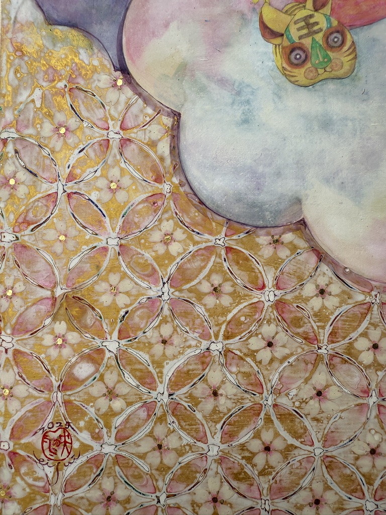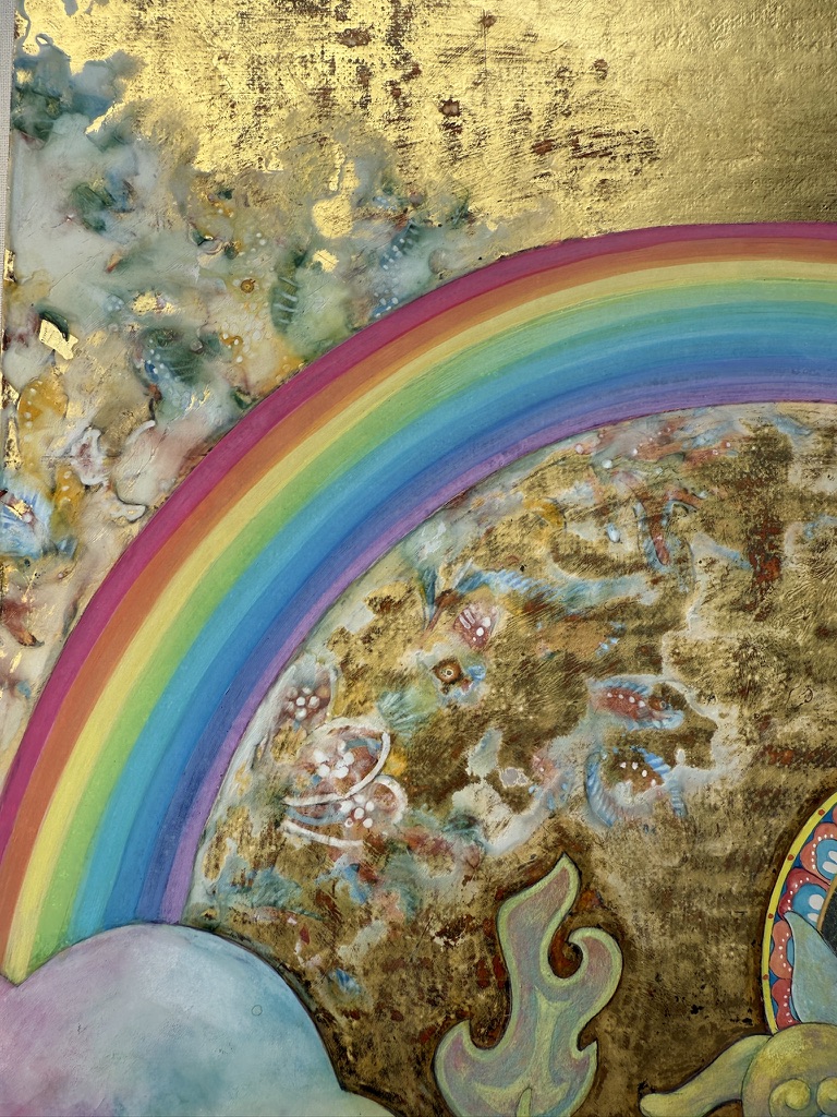 Materials: Panel, earth (soil), hemp cloth, Japanese pigment paste, acrylic emulsion, mineral pigments, gold leaf, water-gilded gold, brass leaf、aluminum leaf