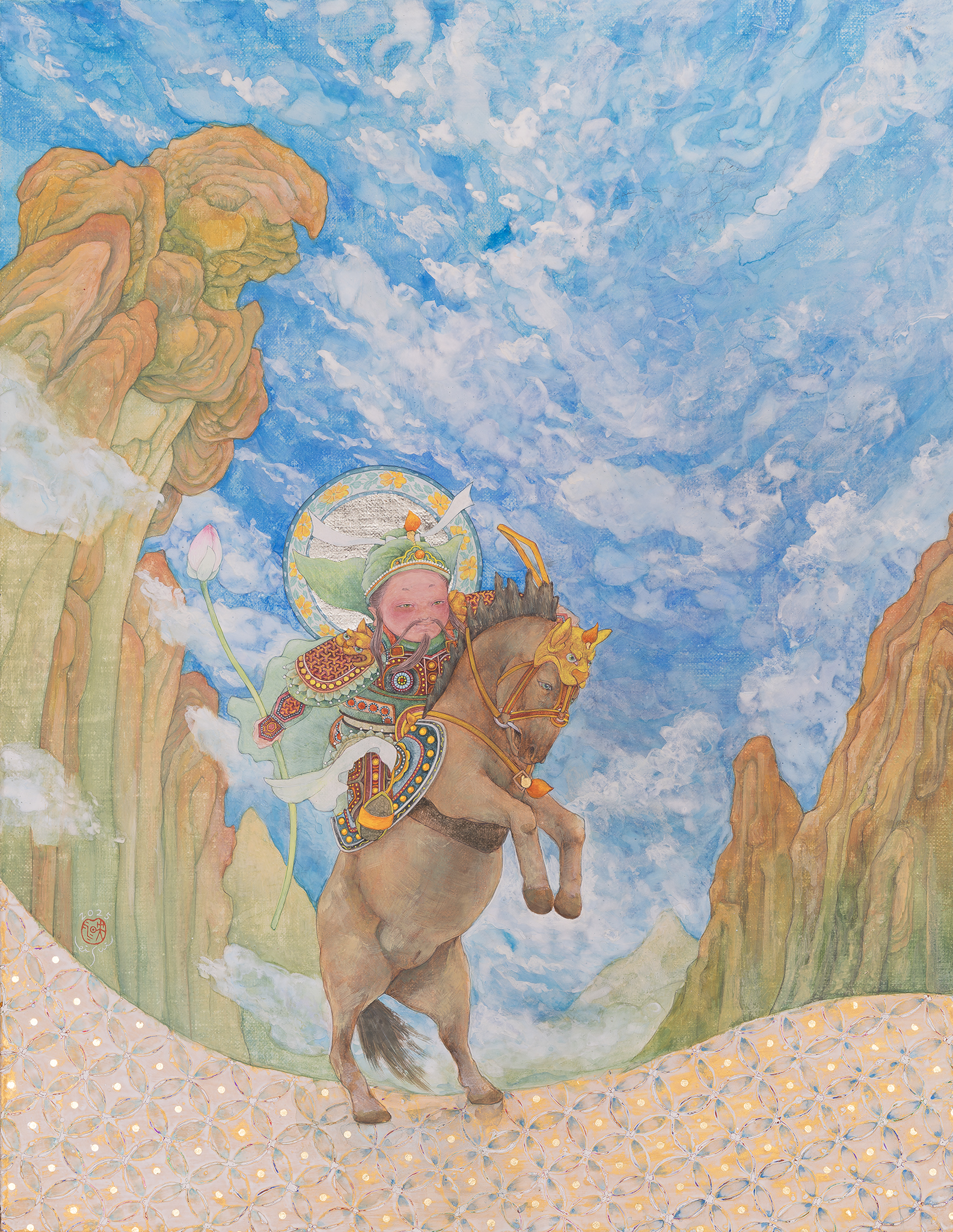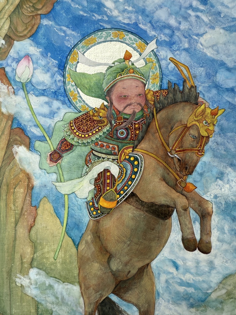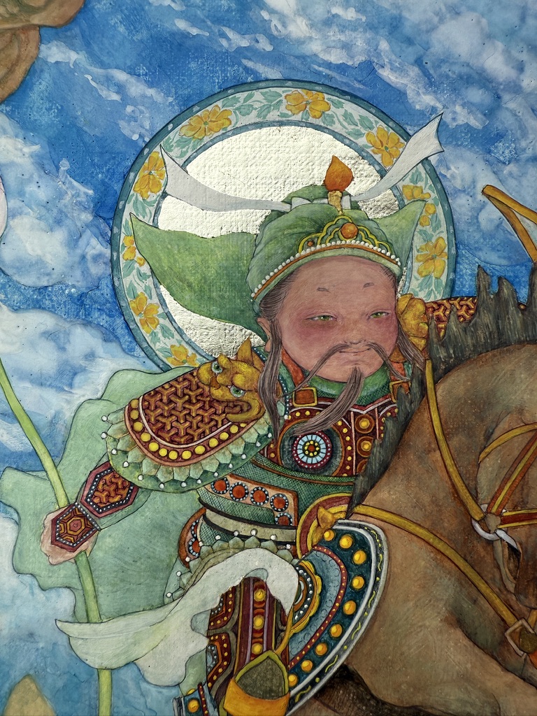 さらに、私が描く仏画の仏様には武器を持たせないことを決めているので、一番の特徴の一つである青龍偃月刀を持たせられないとなると関羽を示唆する手がかりが一つも無くなってしまうのです。