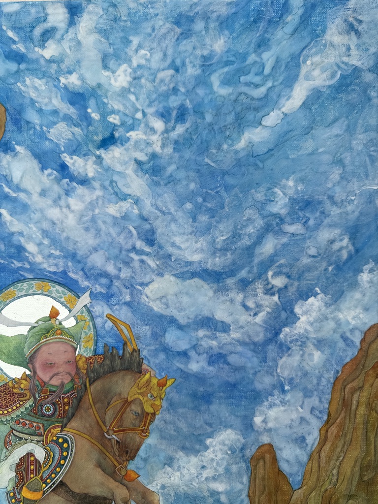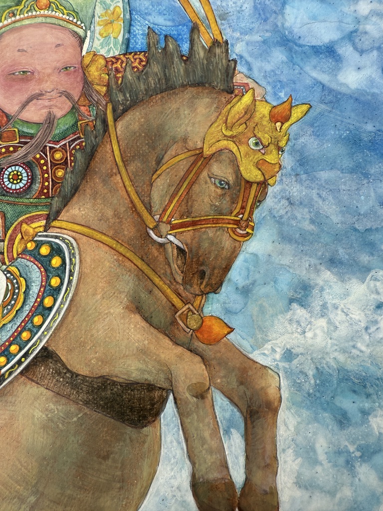色々悩んで様々な下図を作りましたが、今回は関羽らしく、馬に跨っている姿で中国装飾の甲冑を描くことを楽しむことにしました。