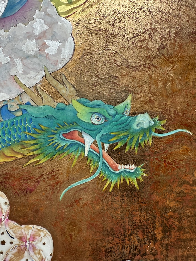 ベビー龍頭観音ちゃんはその雲に乗って、海の上を大好きな龍と共に超えていこうとしています。