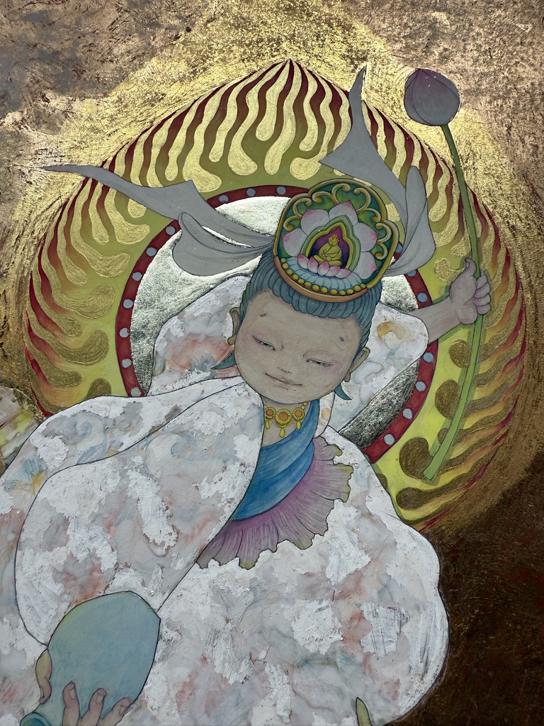 素材:パネル・土・麻布・日本画煉絵具・アクリルエマルジョン・岩絵の具・金箔・水金箔・洋金箔・アルミニウム箔、銀箔